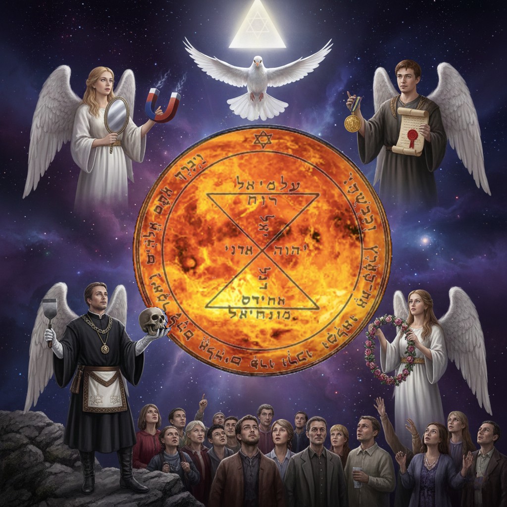 IAN:Seuraavaksi tutkitaan Auringon neljättä pentaakkelia. Siitä sanotaan että se mahdollistaa nähdä näkymättömiä henkiä niiden jotka niitä kutsuvat, ja kun pentaakkelin näyttää heille he välittömästi tulevat näkyviksi. Pentaakkelissa jälleen kahdeksan vegvisir tyylinen kahdeksan pinnaa joiden keskelle kirjotettu hebreaksi IHVH ja ADONAI, pinnojen...