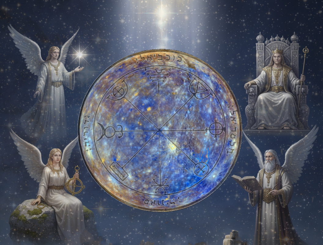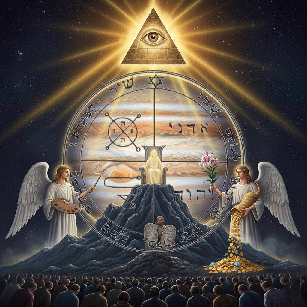 IAN: Tänään työskennellään Jupiterin kolmannen pentaakkelin kanssa. Tämä puolustaa ja suojelee niitä jotka kutsuvat ja aiheuttavat Henkiä tulemaan. Kun he ilmestyvät näytä heille tätä pentaakkelia jolloin he välittömästi tottelevat. Pentaakkeli on jaettu neljään osioon joista vasemmalla ylimpänä on Jupiterin maaginen sinetti nimellä YHVH hebrean...