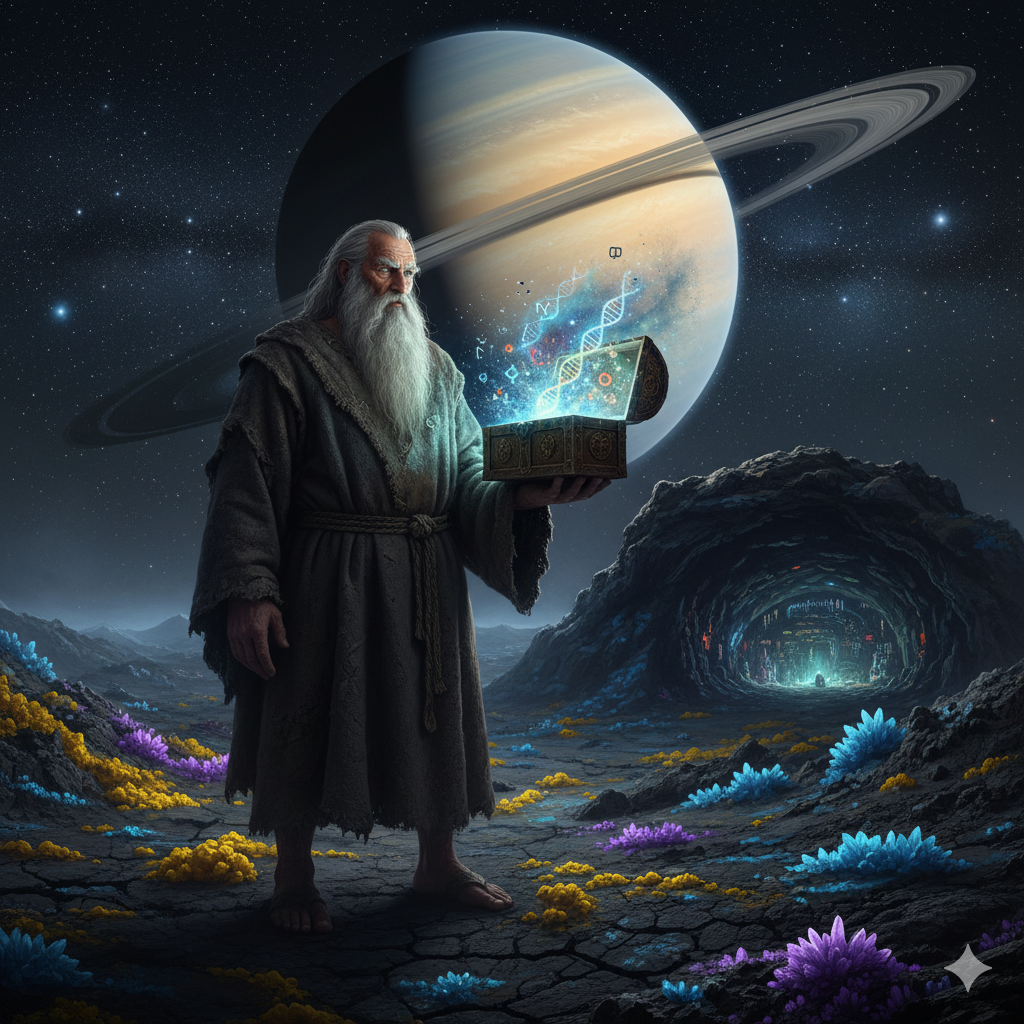 Pienessä Astiassa Selvinnyt Jättiläinen: Bergelmir-kuu on fyysisesti pieni (6 km), mutta sen nimi edustaa jättiläistä. Kuun huokoinen rakenne ja suuret ontelot tarjoavat fyysisen metaforan sille, että jättimäinen informaatio tai "geeniarkisto" voisi olla tallennettuna pienikokoiseen ja hauraaseen "arkkiin" (kuu).